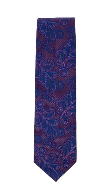 Navy & Burgundy Paisley Patterned Tie